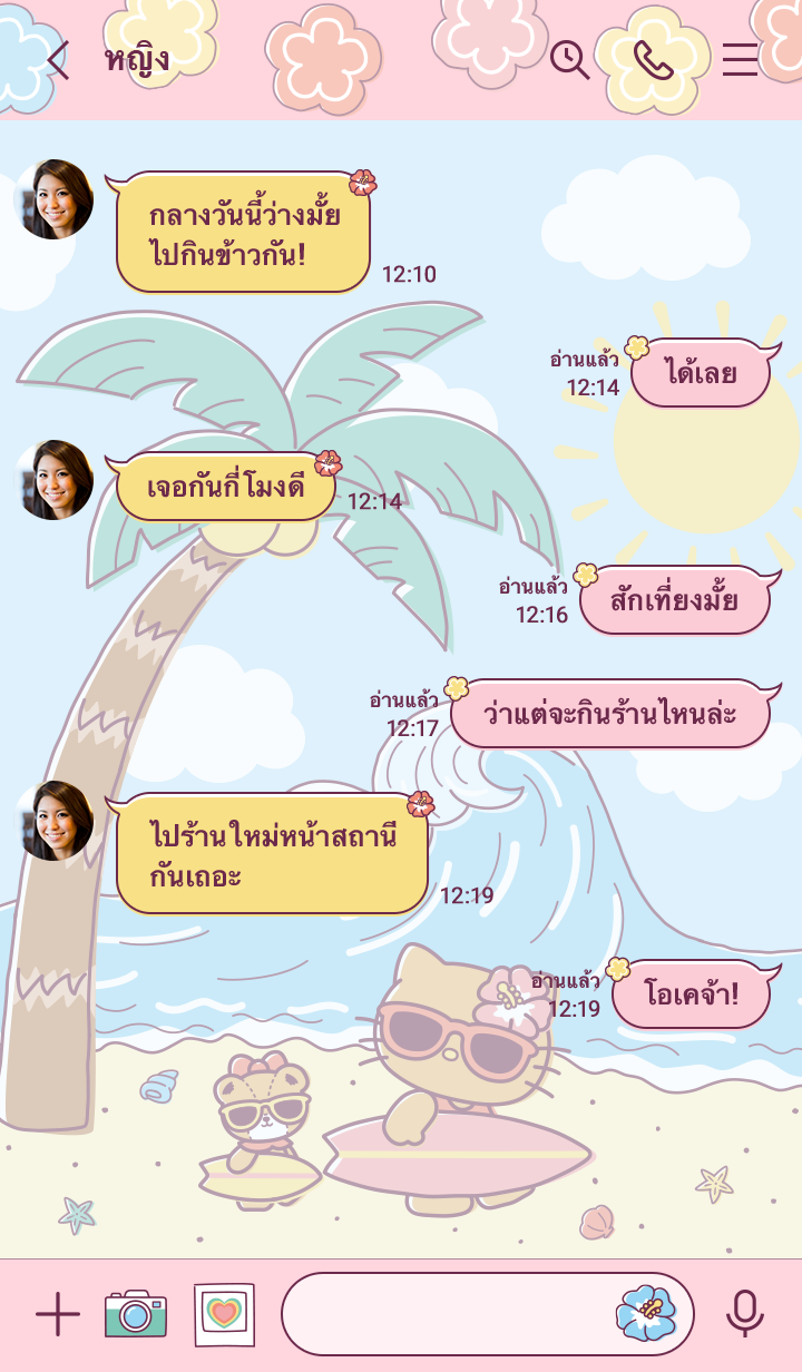 Hello Kitty ผิวแทนสวยชวนหลง♪ พักผ่อนริมหาด เล่นเซิร์ฟ หน้าร้อนมีเรื่องสนุกๆ ให้ทำเยอะแยะเลย! (จะมีการอัพเดตธีมเป็นระยะจนถึง 180 วันหลังสิ้นสุดการจำหน่าย)