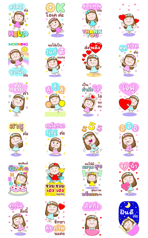 Comment: Sweet Girl: Cutie Big Stickers and Sound by PeakStudio. Cute Big everyday stickers with lovely sound and candy pastel colors that will brighten and cheer you up whether on workdays or weekends. Send daily greetings, encouragement, support, warmth, happiness, love, care, blessings, birthday wishes (HBD) and more! บิกสติกเกอร์