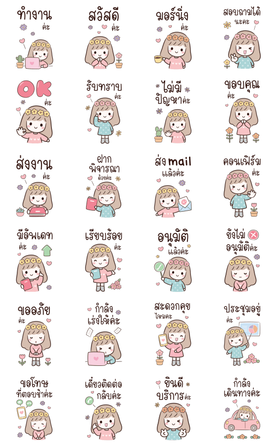 Comment: Minimal girl: Good Job & Flower. Minimal girl's words for work. บิกสติกเกอร์