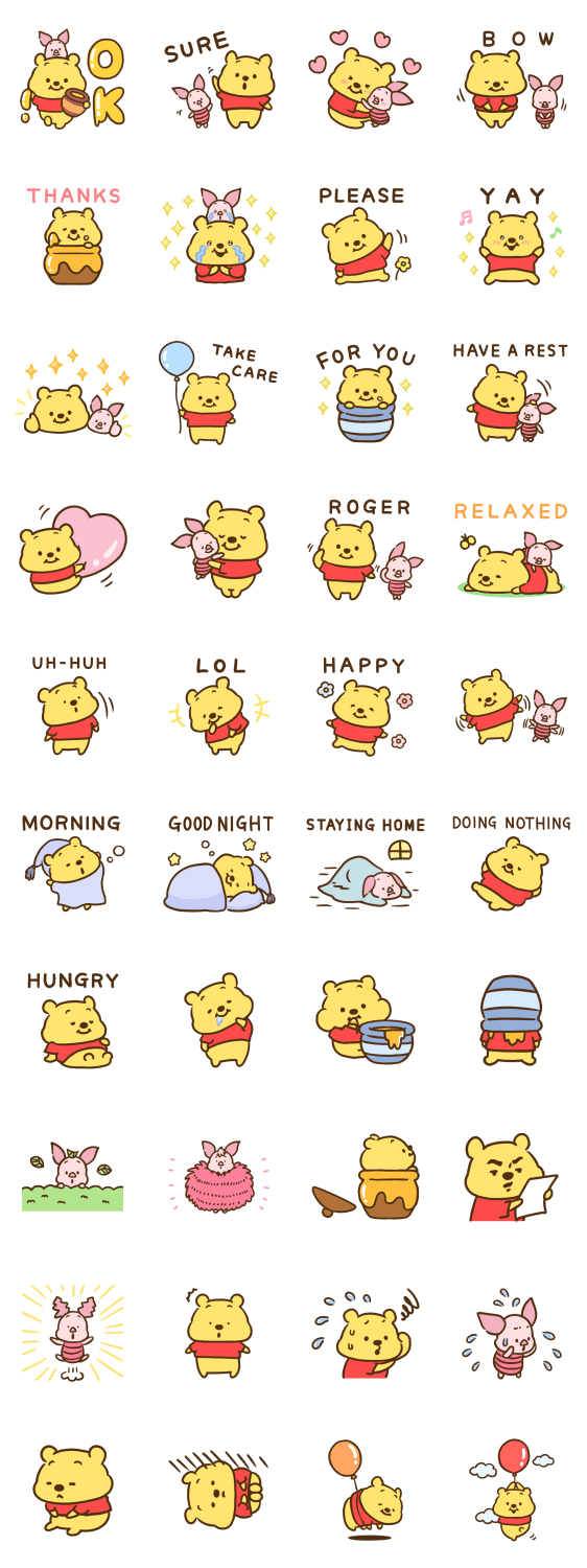 Comment: Pooh & Piglet: Friends Forever (mojiji). Check out these new Pooh & Piglet stickers, drawn by popular illustrator mojiji! This soothing set is packed with stickers featuring Pooh and Piglet leisurely going about their day!