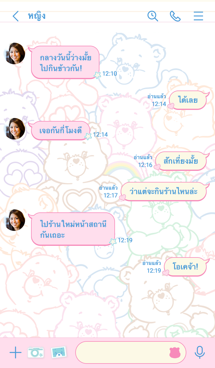 ธีม Care Bears เต็มจอ♡ Care Bears มาในลายเส้นสุดเก๋ สีสันสดใสน่ารักอัดแน่นเต็มจอ♪ หาน้องที่ชอบให้เจอ แล้วแชทคุณจะสนุกยิ่งขึ้น⭐︎ (จะมีการอัพเดตธีมเป็นระยะจนถึง 180 วันหลังสิ้นสุดการจำหน่าย)
