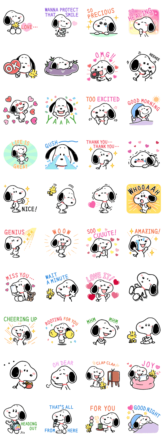 Comment: Relaxed and Cute! Snoopy (Cheer). Use these cute Snoopy stickers with relaxed vibes to cheer on your faves and show your love for them! This set is filled with lovely expressions that are also great for everyday use!