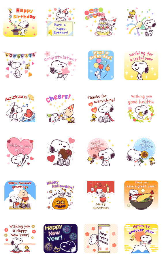 Comment: Use them anytime! Snoopy Greetings! Use these versatile Snoopy greeting stickers all year round, whether it's for birthdays, anniversaries, or seasonal events! Make your special days even funner with these Pop-Up stickers!
