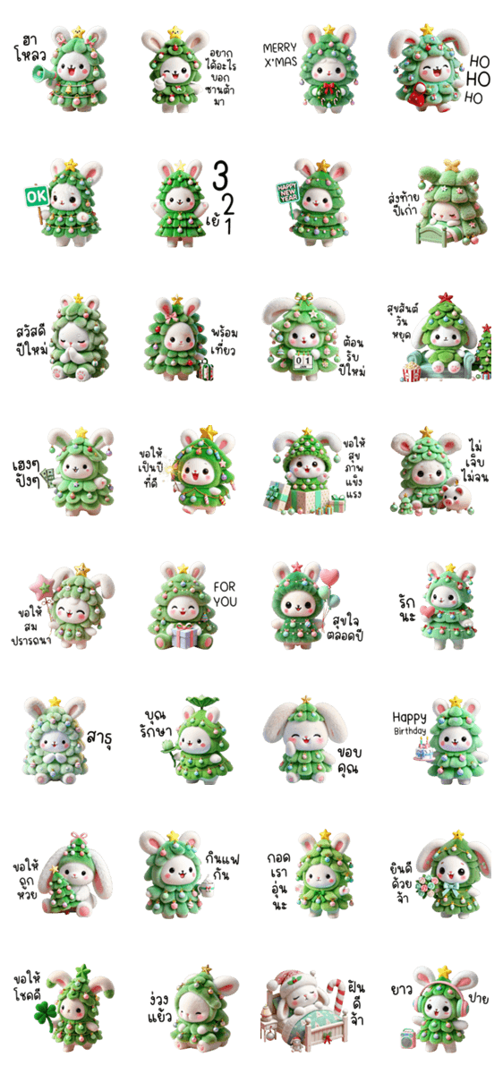 กระต่ายน้อยใส่ชุดต้นคริสมาสต์น่ารัก ปีใหม่
