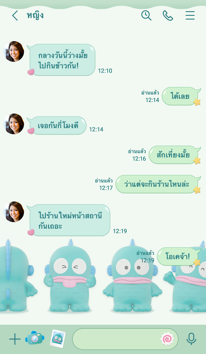 Hangyodon กลายเป็นสามมิติมาเยือนห้องแชทคุณแล้ว♪ สีเขียวมินท์น่ารักหวานกรุบ♡ (จะมีการอัพเดตธีมเป็นระยะจนถึง 180 วันหลังสิ้นสุดการจำหน่าย)