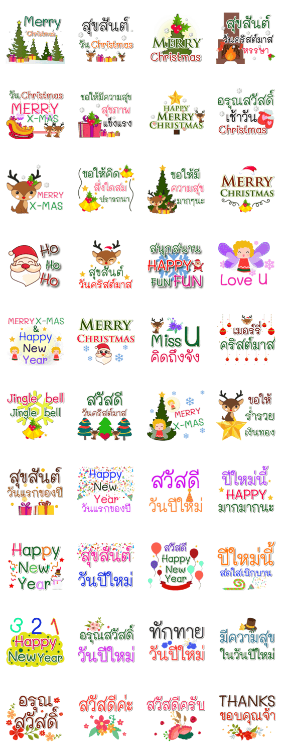 สติกเกอร์ฟินๆ ให้คุณและเพื่อนได้พบซานตาคลอส ได้สัมผัสหิมะ ต้นคริสต์มาส ของขวัญ รถเลื่อน-กวางเรนเดียร์ พร้อมคำอวยพรดีๆ ในเทศกาลวันคริสต์มาสและวันขึ้นปีใหม่