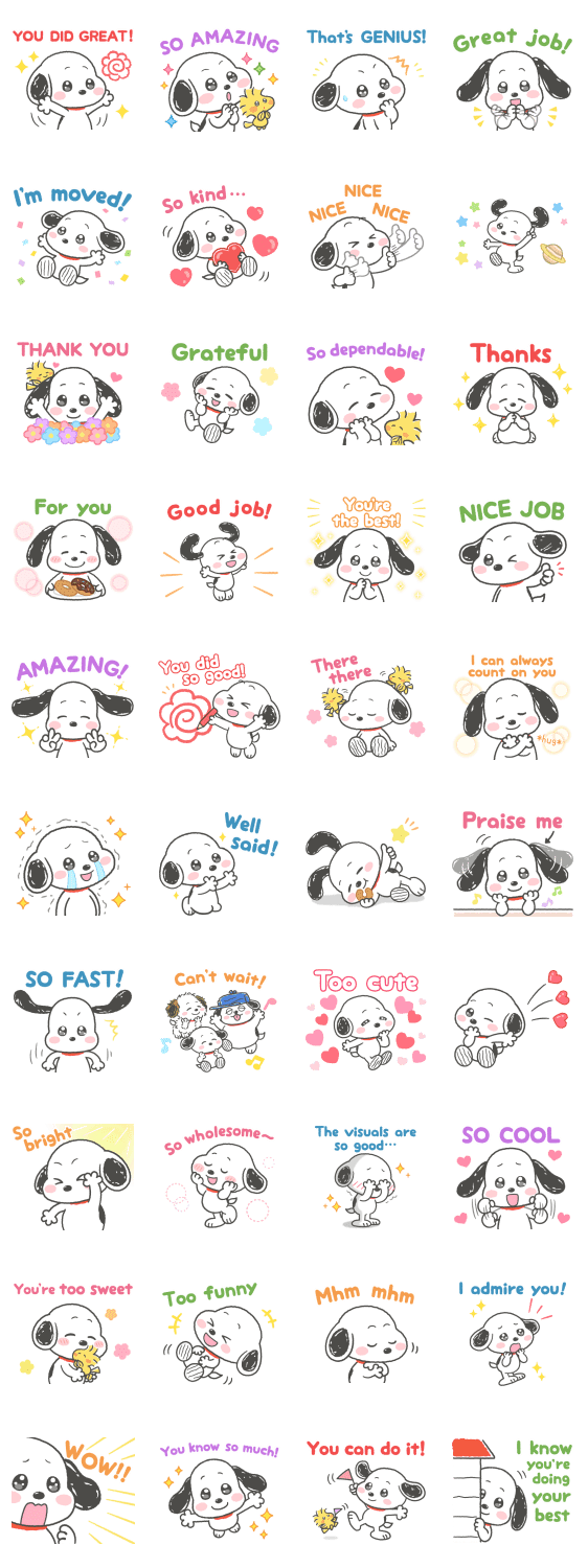 สติกเกอร์ Snoopy ตาแป๋วสุดน่ารักมาแล้ว! มีสติกเกอร์สำหรับชมและให้กำลังใจเพียบ♡