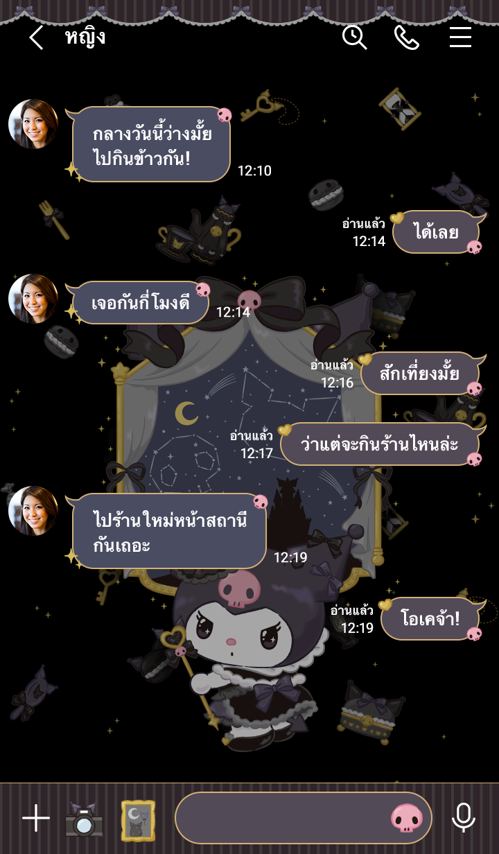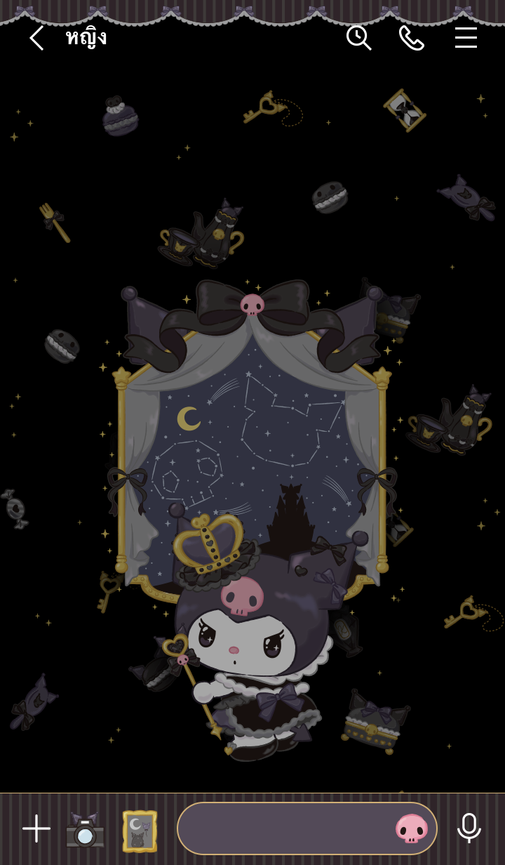 ธีม Kuromi ดีไซน์ฉลองครบรอบ 20 ปีในปี 2568♡ ธีมดาร์คโกธิคในโทนสีประจำตัวของ Kuromi ถ้า Kuromi ได้เป็นราชินีจะเป็นยังไงนะ♪ (จะมีการอัพเดตธีมเป็นระยะจนถึง 180 วันหลังสิ้นสุดการจำหน่าย)