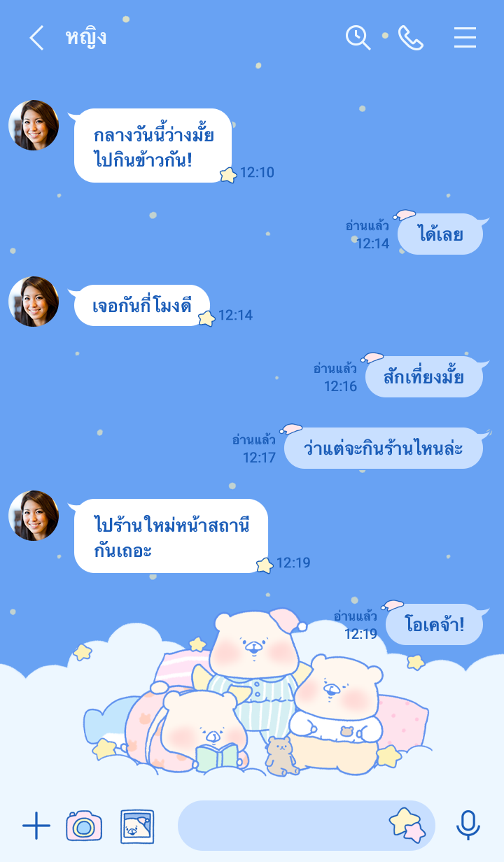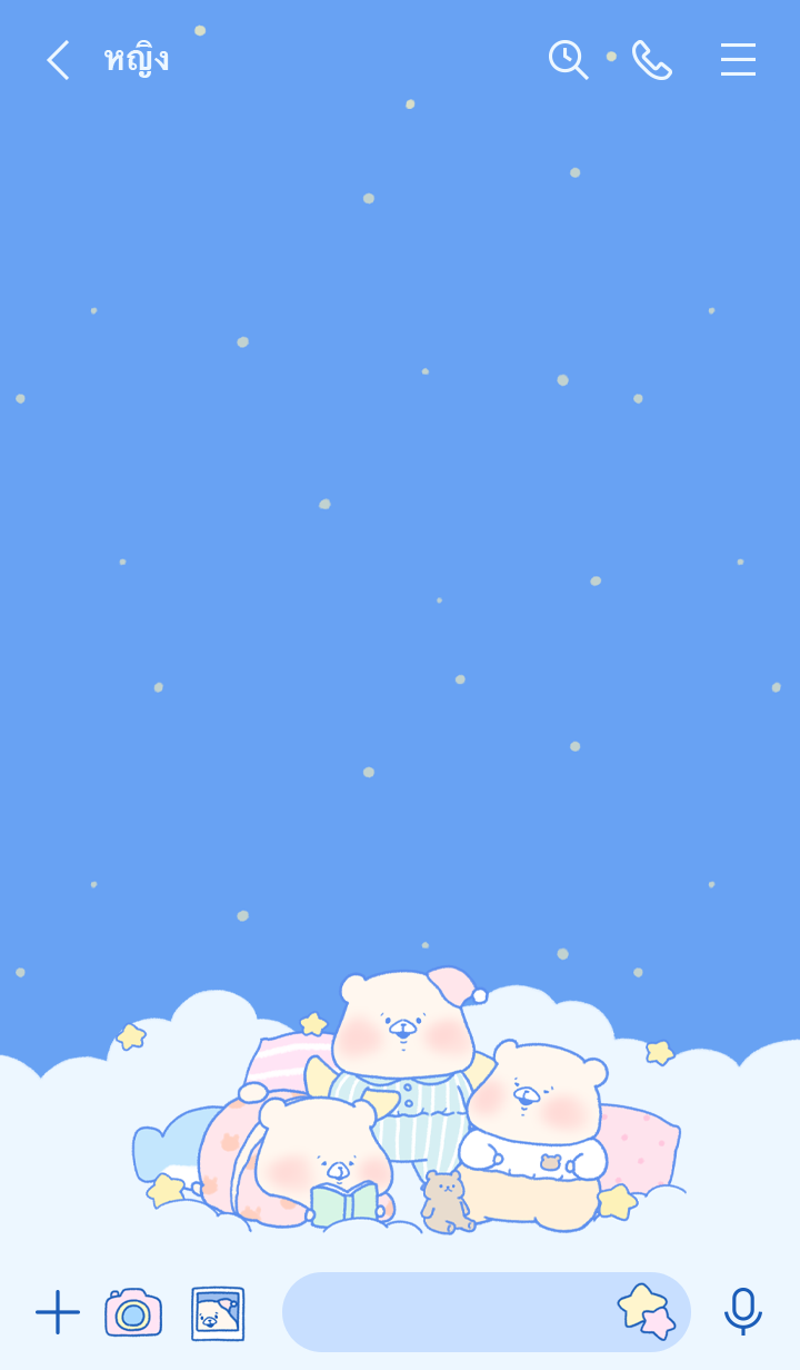 น้องหมีใส่ชุดนอนพักผ่อนบนก้อนเมฆ♪ ดีไซน์สีฟ้าเหมือนท้องฟ้ายามค่ำคืน น่ารักตะมุตะมิ♪ (จะมีการอัพเดตธีมเป็นระยะจนถึง 180 วันหลังสิ้นสุดการจำหน่าย)