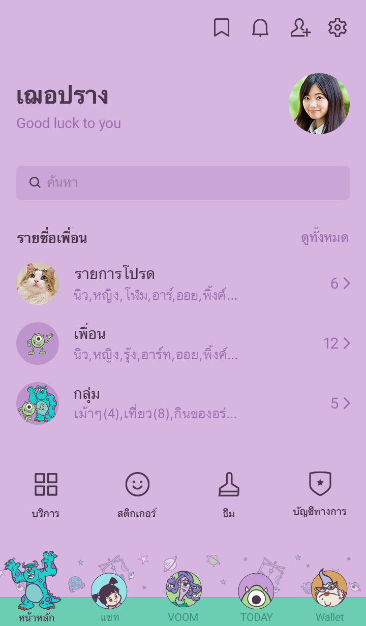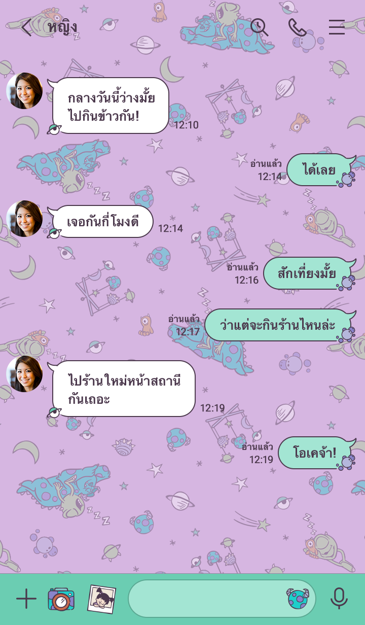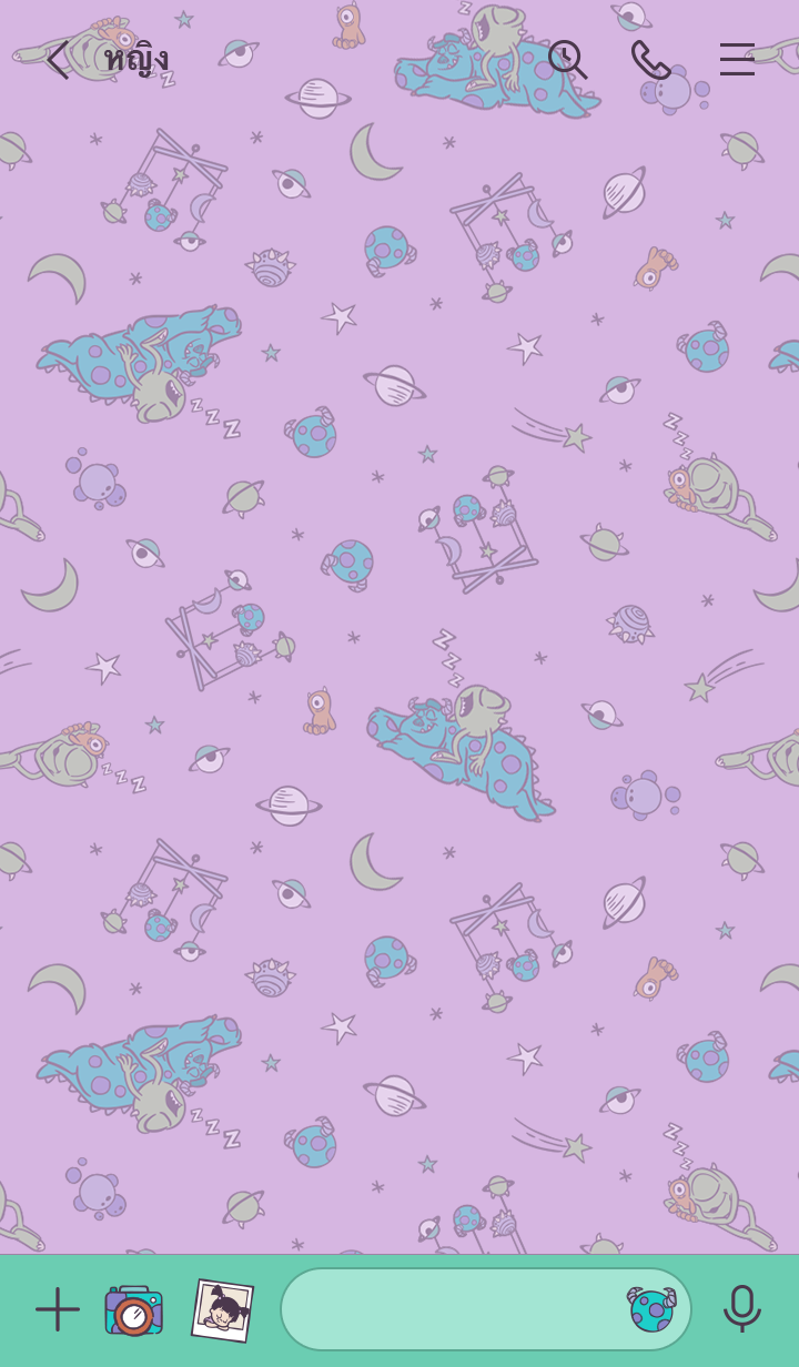 ธีมตัวละคร Monsters, Inc. ที่ทุกคนชื่นชอบ อบอุ่นจนเหมือนฝัน! ดีไซน์สไตล์ป๊อปสดใสน่ารัก เพิ่มสีสันให้แชทด้วยสีม่วงและสีเขียว♪ (จะมีการอัพเดตธีมเป็นระยะจนถึง 180 วันหลังสิ้นสุดการจำหน่าย)