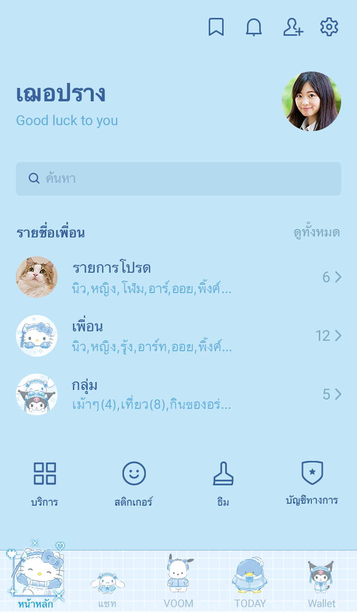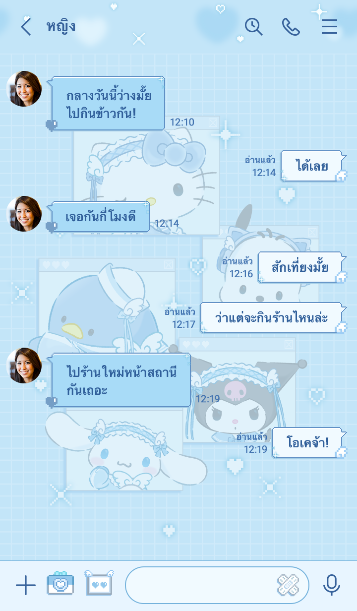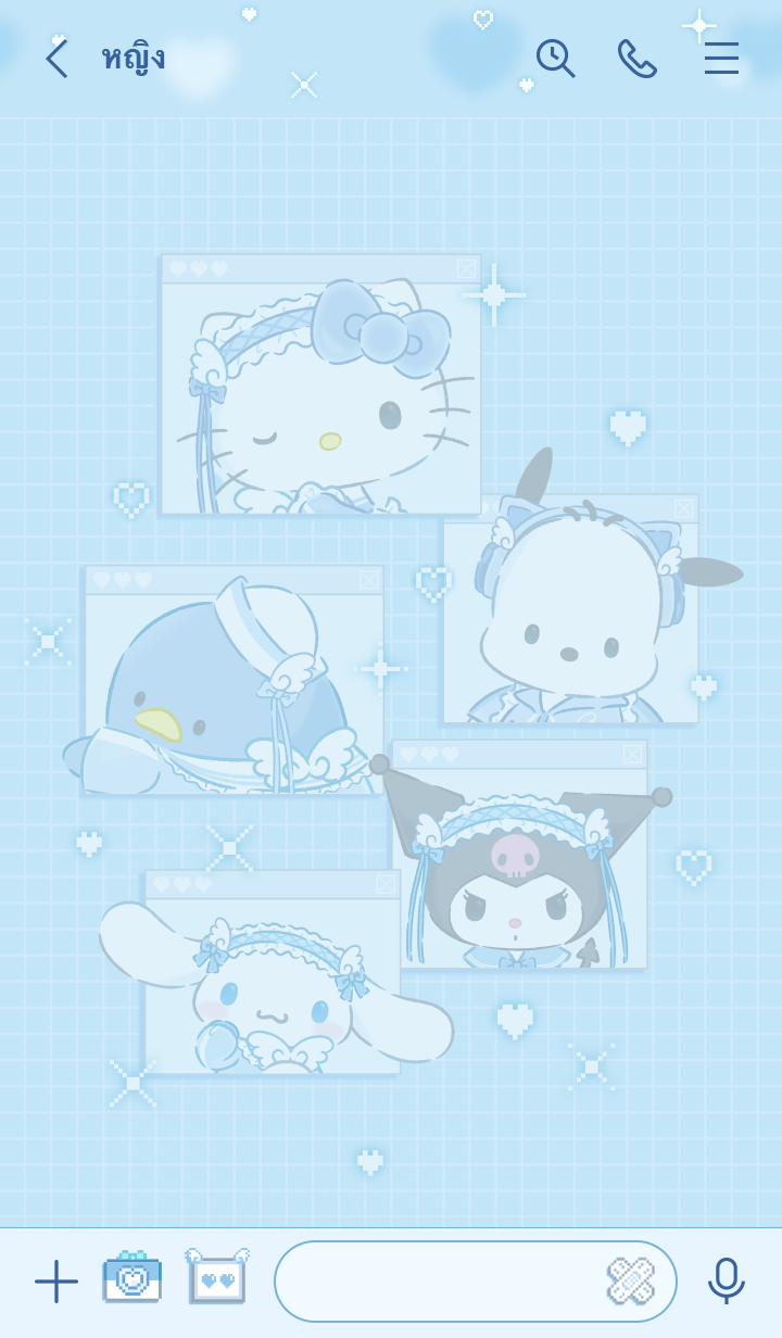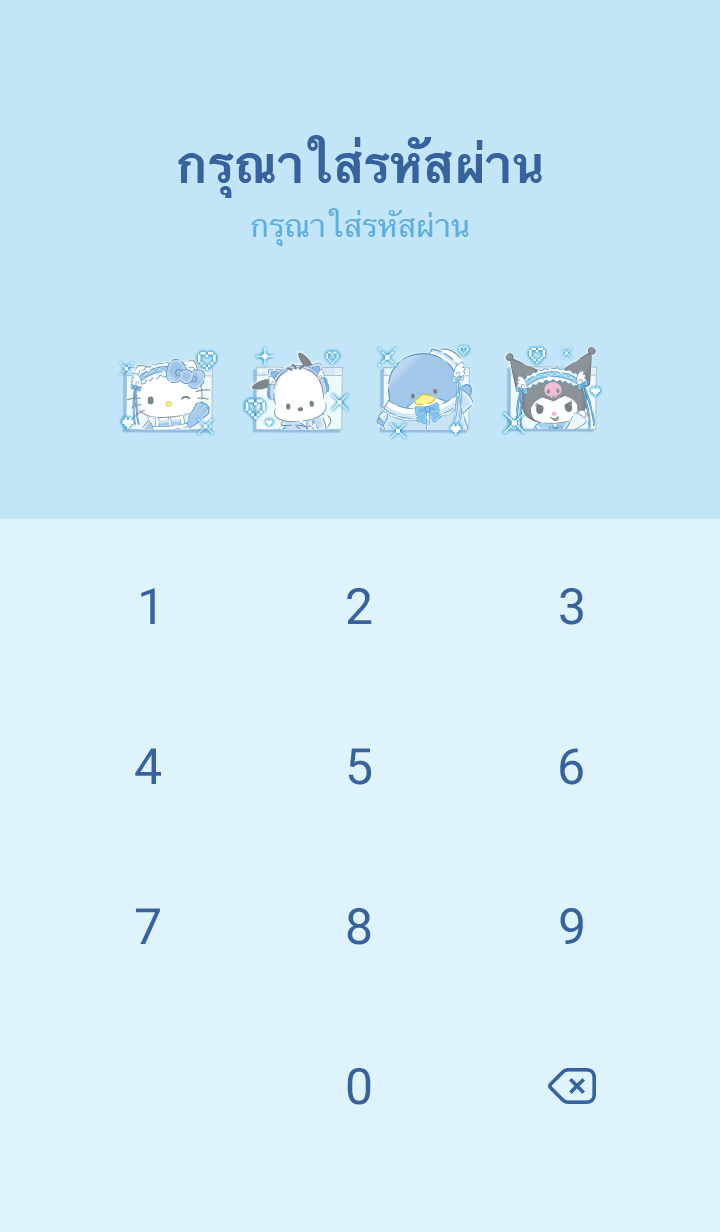 Comment: Sanrio characters (Light Blue Days). It's aaaall in light blue! The color's so cute! This theme features Sanrio characters in matching light blue outfits. Updates supported for 180 days after sales end.
