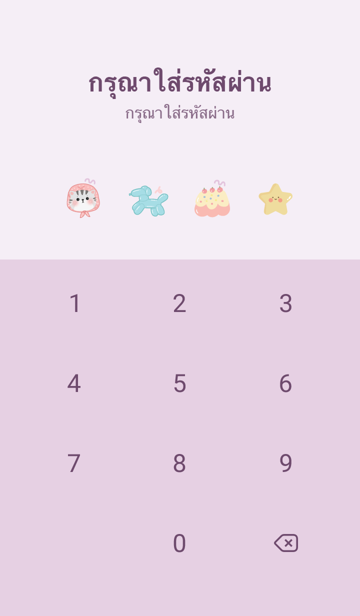 ธีมไลน์หมูอ้วน&วัวน้อย มินิ กาแล็กซี สีม่วงอ่อน |