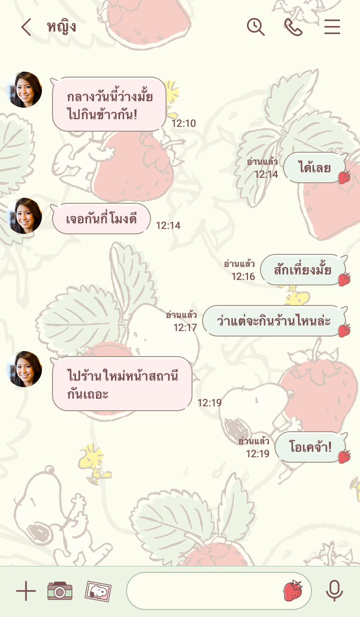 Snoopy กอดสตรอว์เบอร์รี่ลูกใหญ่น่ารักสุดๆ♪ ธีมสีธรรมชาติกับสตรอว์เบอร์รี่ลูกใหญ่โดดเด่น สีสบายตาอ่านแชทง่าย สวยและใช้งานสะดวก (จะมีการอัพเดตธีมเป็นระยะจนถึง 180 วันหลังสิ้นสุดการจำหน่าย)