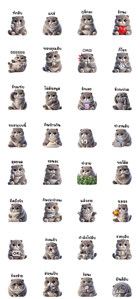 แมวเทา ตัวตึง บิ๊ก * บิ๊กสติกเกอร์จะแสดงในห้องแชทด้วยขนาดที่ใหญ่กว่าสติกเกอร์ทั่วไป