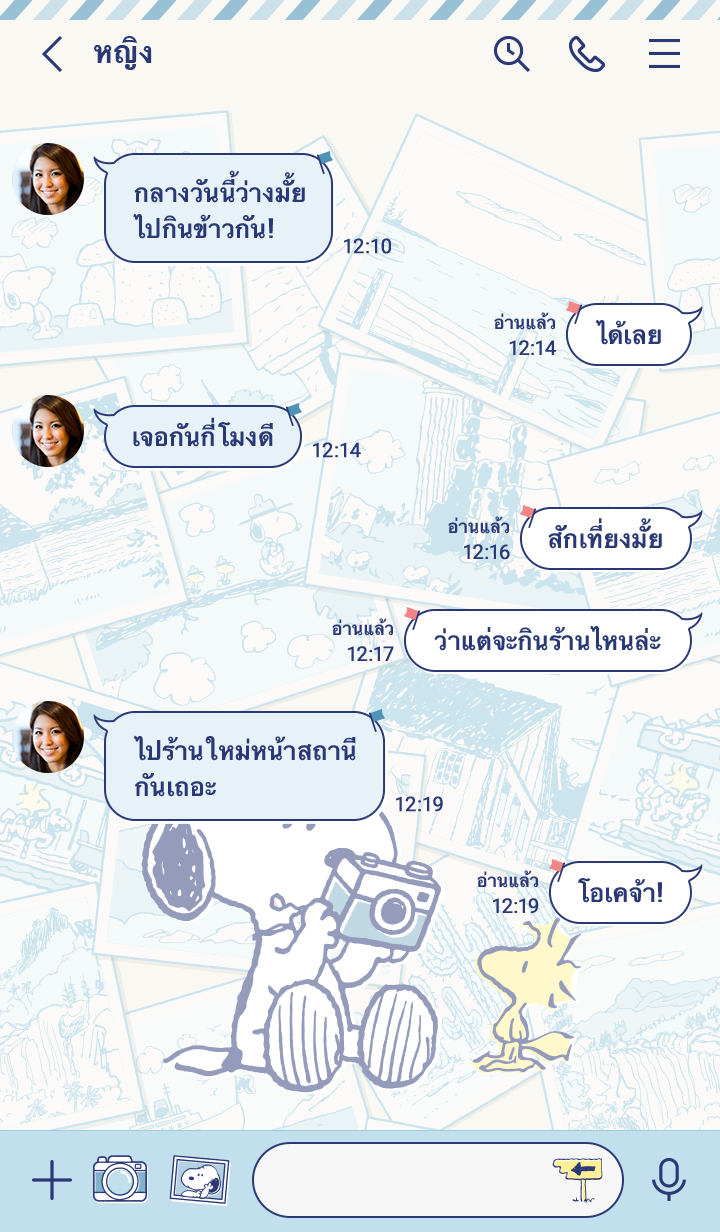 มาเพิ่มความสนุกให้ทริปกัน! ธีม Snoopy ถือกล้องท่องเที่ยว สีฟ้าและขาว เรียบง่าย ใช้ได้ยาวๆ เหมาะกับทุกคน (จะมีการอัพเดตธีมเป็นระยะจนถึง 180 วันหลังสิ้นสุดการจำหน่าย)