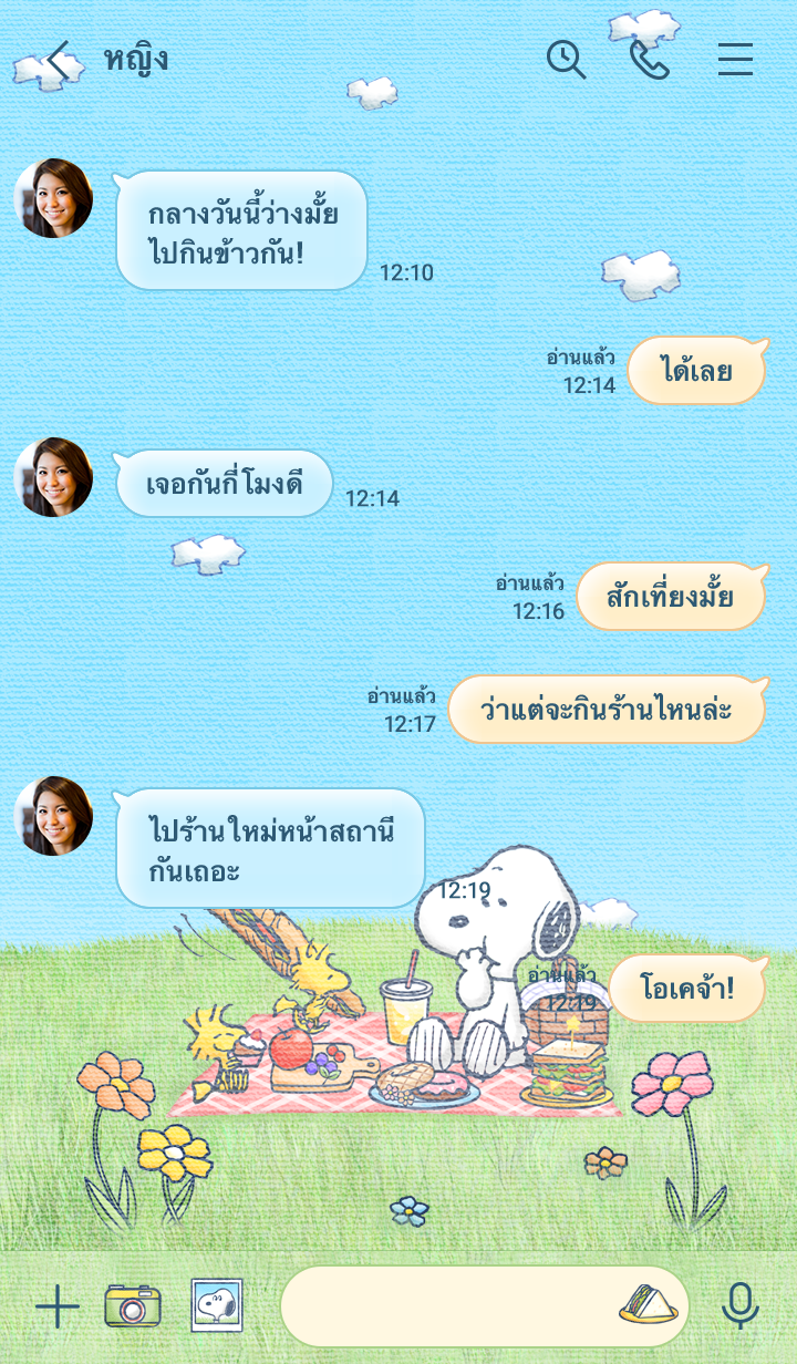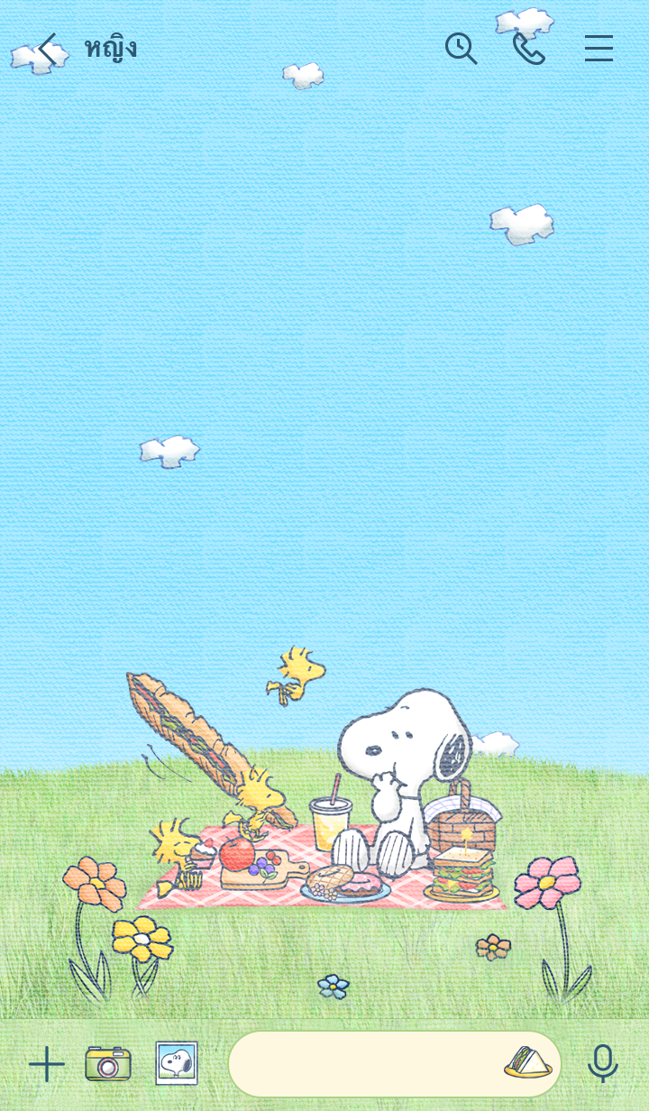 ธีม Snoopy กับ Woodstock เพลิดเพลินกับการปิกนิกท่ามกลางธรรมชาติ! อารมณ์ดีด้วยสีสันสดใสของสีฟ้าและสีเขียวอันแสนสดชื่น♪ (จะมีการอัพเดตธีมเป็นระยะจนถึง 180 วันหลังสิ้นสุดการจำหน่าย)