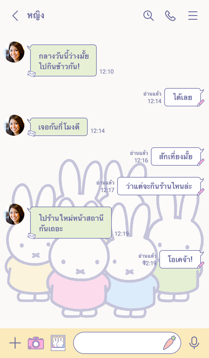 miffy รวมตัวกับแก๊งเพื่อน! ดีไซน์น่ารักเรียบง่ายบนพื้นหลังสีขาว แค่เปิดหน้าแชทก็ได้เจอ miffy กับแก๊งเพื่อนสุดเฮฮาแล้ว (จะมีการอัพเดตธีมเป็นระยะจนถึง 180 วันหลังสิ้นสุดการจำหน่าย)