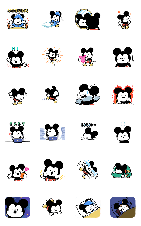 Comment: Mickey Mouse Daily Life (Relaxed Motion). The warm touch and relaxed motions make these stickers so cute in this set of Mickey Mouse stickers! It's loaded with stickers you can use in any casual daily situation you find yourself in.