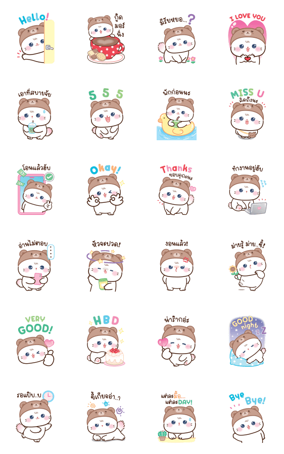 Comment: Cat Beary : Cute every day. "Cat Beary" the cute cat is ready to send cuteness. These are Big stickers with sound. บิกสติกเกอร์
