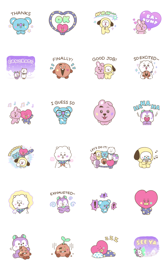 Comment: BT21 Welcome Back, Everyone. Every day is a happy day when everyone is together! Continue your exciting adventures together with the BT21 crew!
