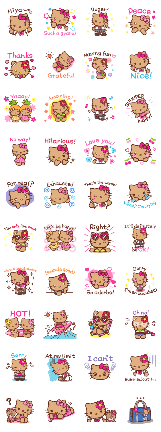 สติกเกอร์ Hello Kitty เวอร์ชันสาวผิวแทนสุดแฮปปี้♡ มาร่าเริงไปด้วยกันกับ Kitty นะ♪