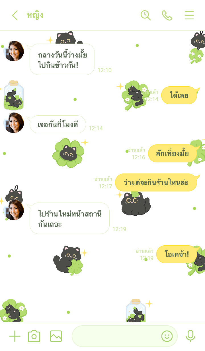 Clovermeow! A lucky little black cat bringing soft clovers and sweet vibes to your chats.
