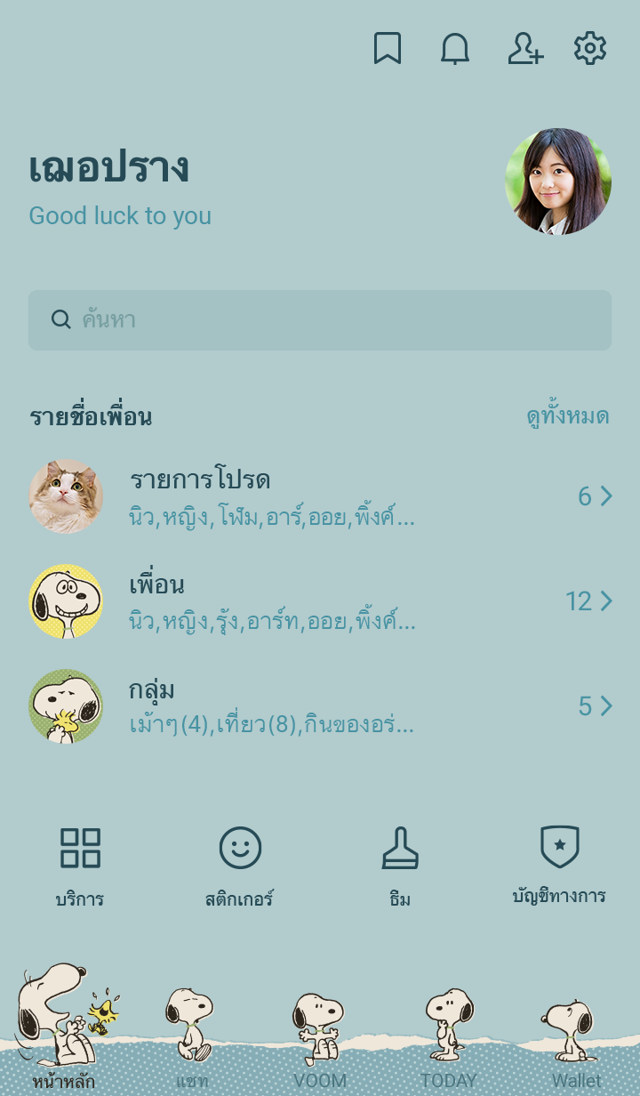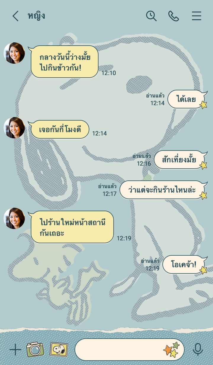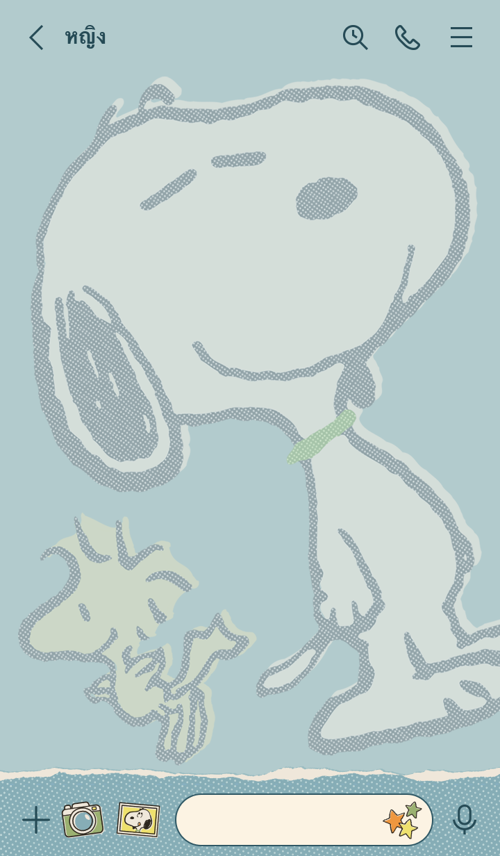 Snoopy ตัวใหญ่ในห้องแชท! ธีมที่คุณจะได้เพลิดเพลินกับสีหน้าร่าเริงอารมณ์ดีของ Snoopy ดีไซน์สีเรโทรป๊อบ โดดเด่นในสไตล์ PEANUTS ใช้ได้ทุกฤดูกาล♪ (จะมีการอัพเดตธีมเป็นระยะจนถึง 180 วันหลังสิ้นสุดการจำหน่าย)