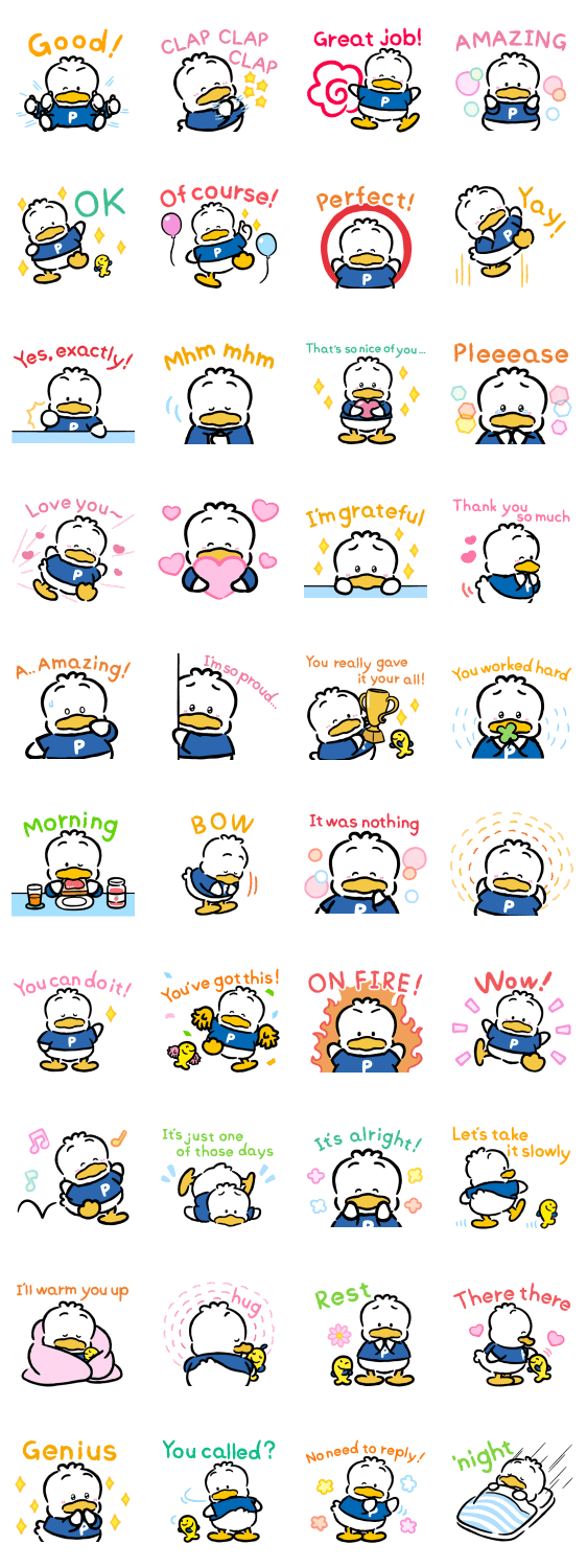Comment: AHIRUNOPEKKLE - Nothing But Affirmations. Pekkle the adorable duck is here to give nothing but affirmations! Use these warm stickers to send a kind message to the people around you who are trying their hardest.
