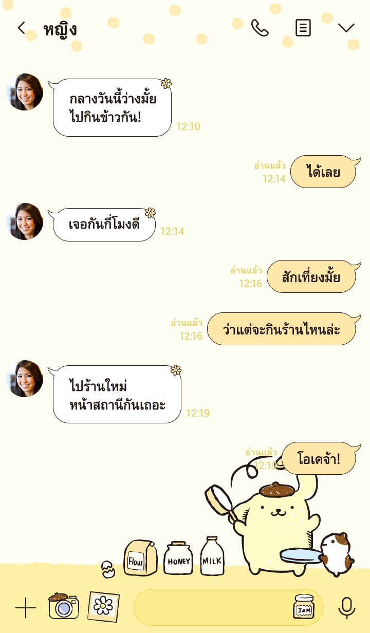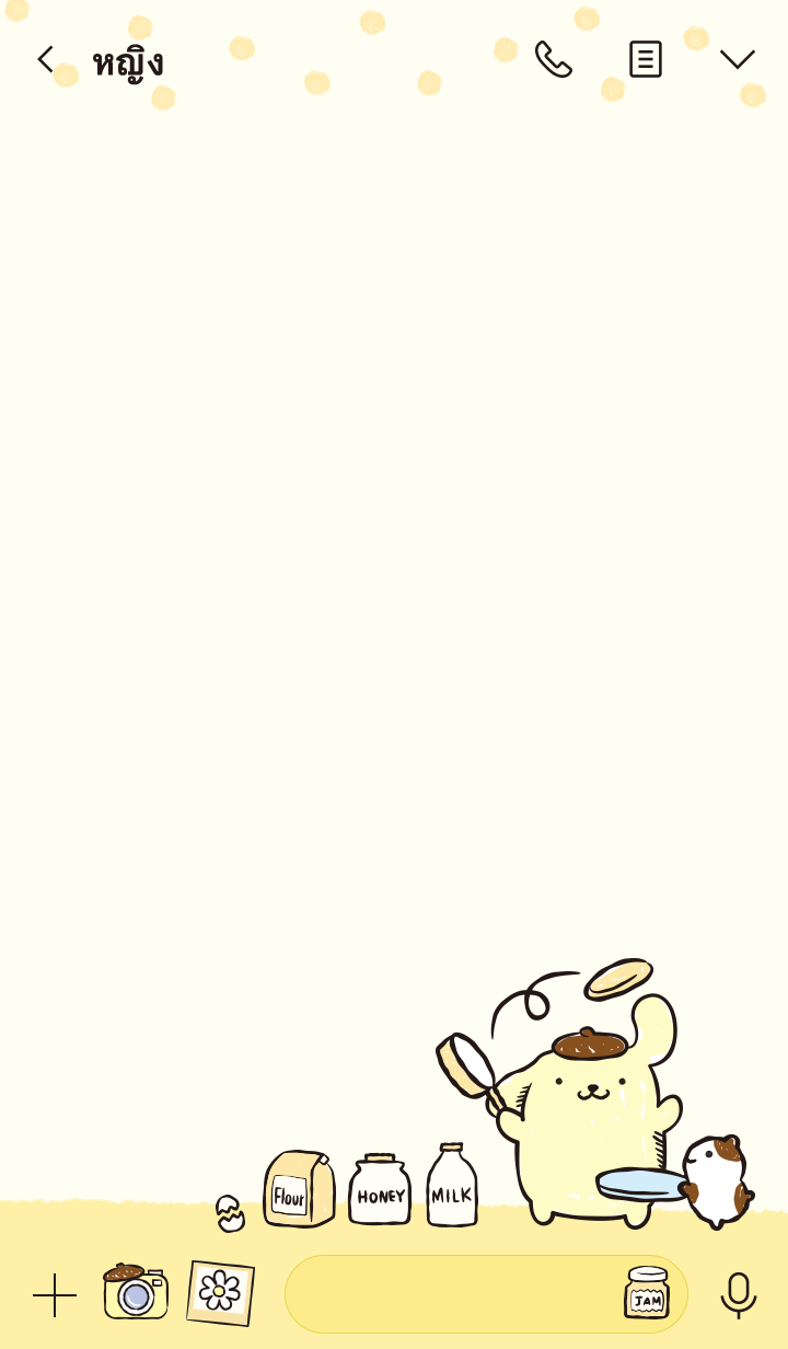Comment: เจ้าหมาพุดดิ้งอ้วนกลม ชื่อปูริน เป็นหมาโกลเด้นรีทรีฟเวอร์ มาเป็นธีมไลน์ให้เพื่อนๆได้โหลดใช้กันแล้ว มาพร้อมกับมัฟฟินเพื่อนซี่และแพนเค้กแสนอร่อย Pompompurin's Pancake. The fun pup Pompompurin is sporting a new look in this hand-drawn theme. Bring a tasty pancake look to your LINE with Pompompurin and his pals! Updates supported for 180 days after sales end.