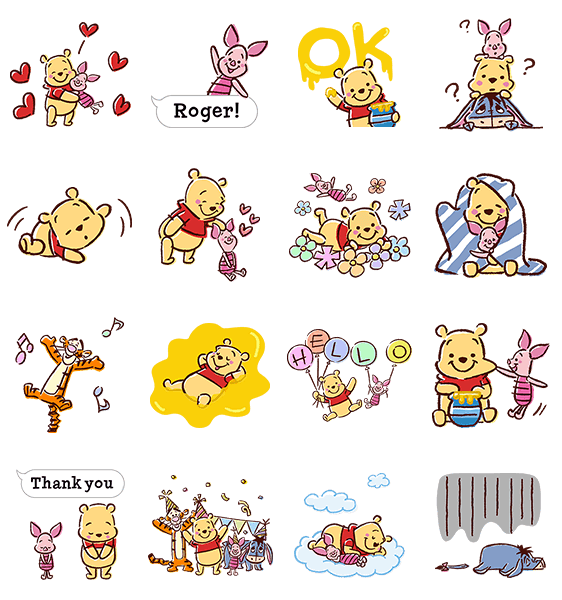 สติกเกอร์ป๊อปอัพชุดแรกจากหมีพูห์ผู้น่ารัก! นุ่มนิ่มน่ารักด้วยลายเส้นอ่อนโยนของสีเทียน♪ เพียงได้เห็นหมีพูห์และผองเพื่อนป๊อปอัพเต็มหน้าจอ ก็ทำให้รู้สึกผ่อนคลายขึ้นมาเลยทีเดียว