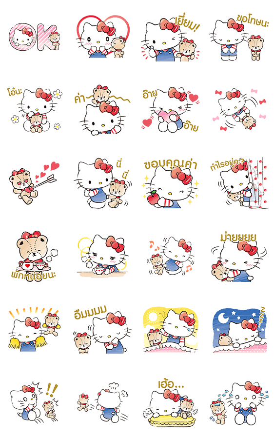 สติกเกอร์เอาใจแฟนๆ เฮลโลคิตตีและ Tiny Chum♪ คู่หูผู้น่ารักในลายเส้นอ่อนโยนพร้อมจะเพิ่มความสดใสให้กับแชทของคุณ และไม่ทิ้งคุณไปไหนไม่ว่าในเวลาสนุกหรือเศร้า♪