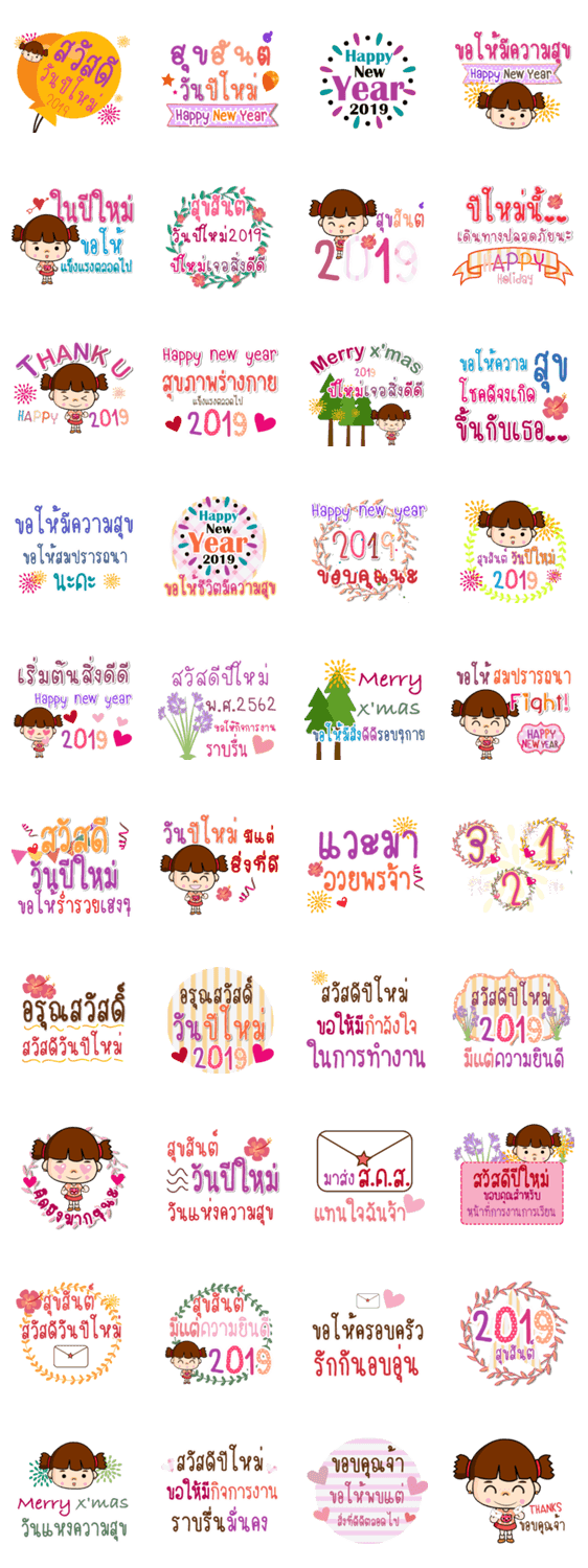 สติ๊กเกอร์ไลน์พาสเทลน่ารัก : สาวน้อยน่ารัก HNY 2023 |