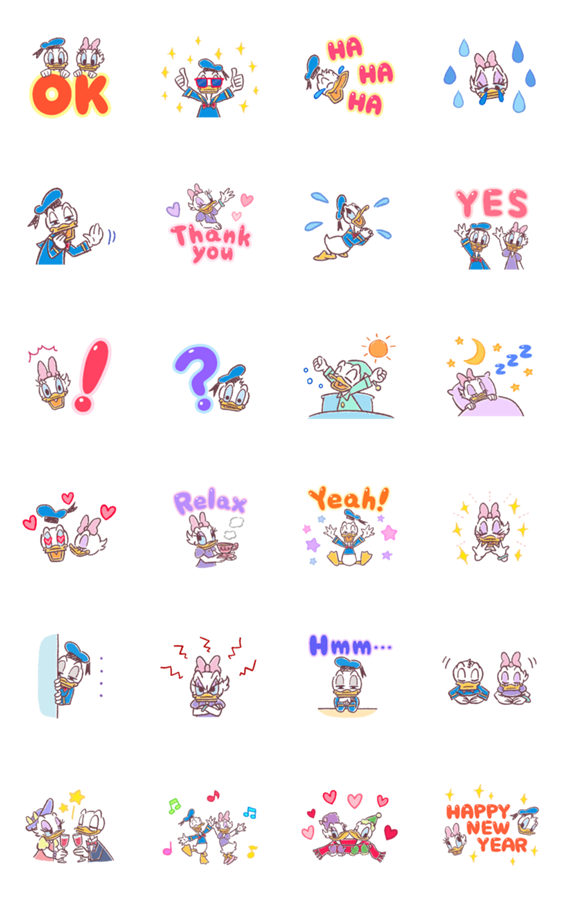 สติกเกอร์ชุดน่ารักหลากหลายอารมณ์จากโดนัลด์ดั๊กและเดซี่ดั๊ก อัดแน่นด้วยข้อความไซส์จัมโบ้ สะใจมากๆ♪ บิ๊กขนาดนี้ อยากบอกอะไรไม่พลาดแน่นอน♪