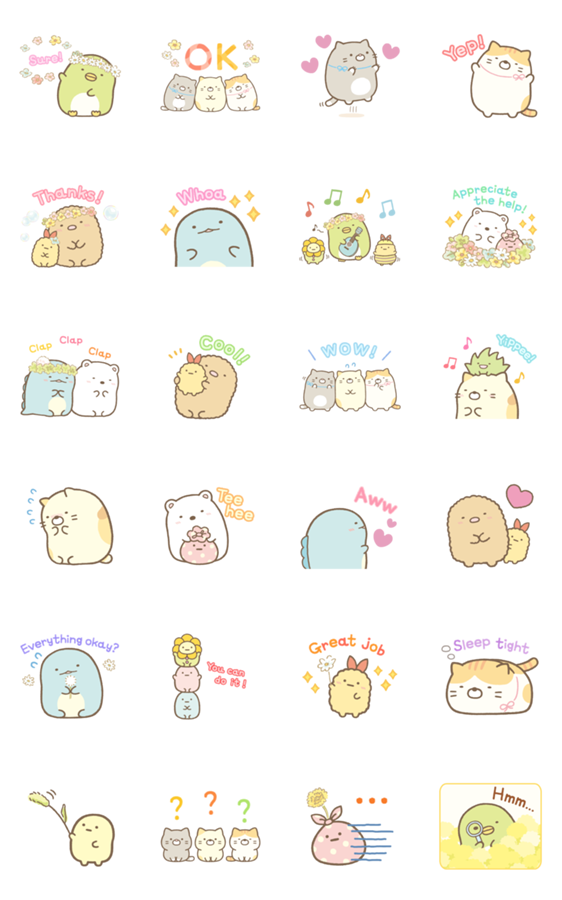 สติกเกอร์น่ารักจาก Sumikko Gurashi ในธีม Happened to meet with Neko’s Siblings♪ มีแต่รูปและคำพูดที่ใช้ตอนแชทบ่อยๆ ทั้งนั้น คุณจะได้สนุกทุกวันเหล่ากับซูมิกโกะผู้น่ารัก♪