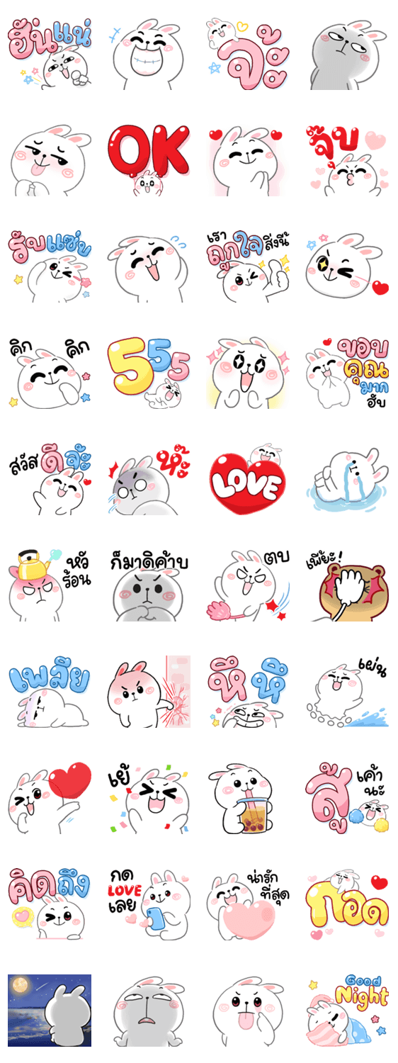 สติ๊กเกอร์ไลน์ตัวกลม หมีนุ่มกับต่ายนิ่ม 2 |