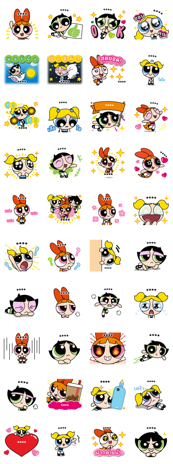 At last, Cartoon Network's The Powerpuff Girls are available as a custom sticker set! The girls feature a variety of fun expressions designed to easily work with all of your chats. Add some text to make these stickers your very own! Be sure to preview your caption before purchasing.