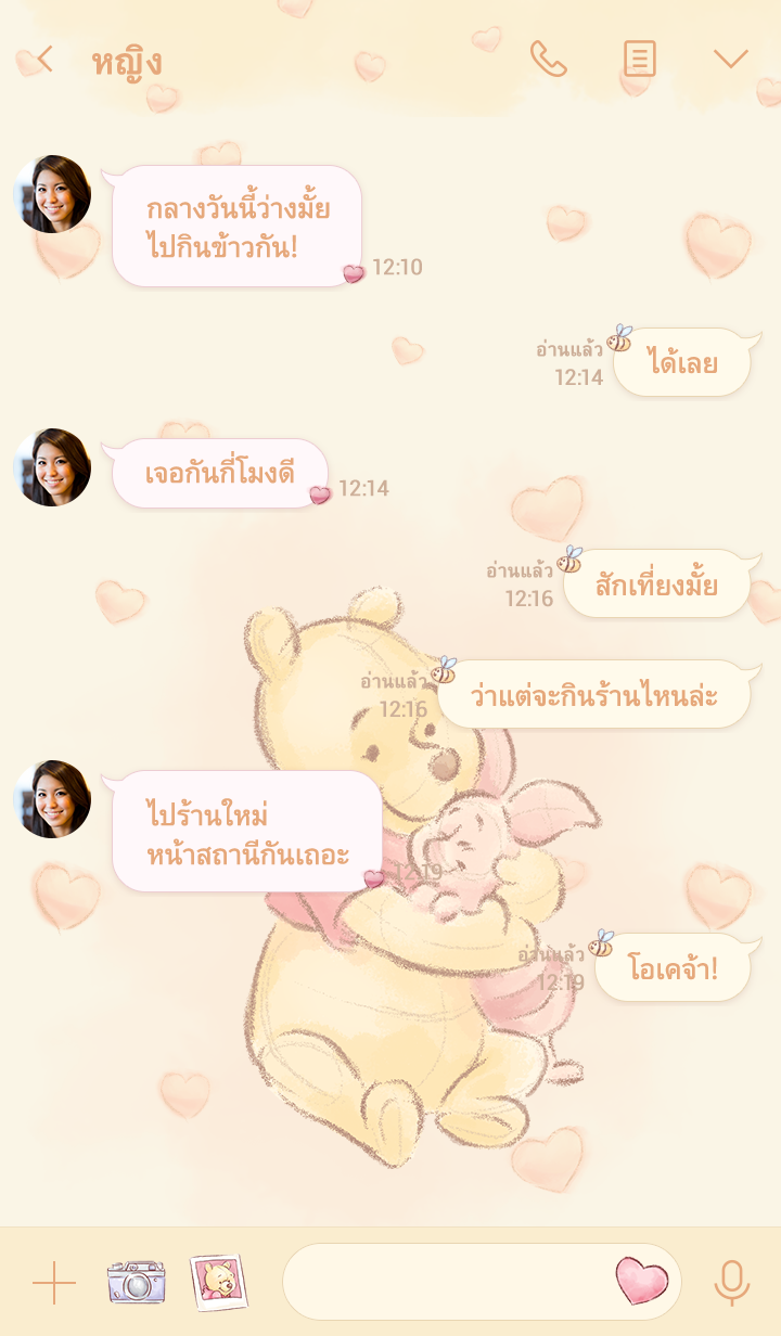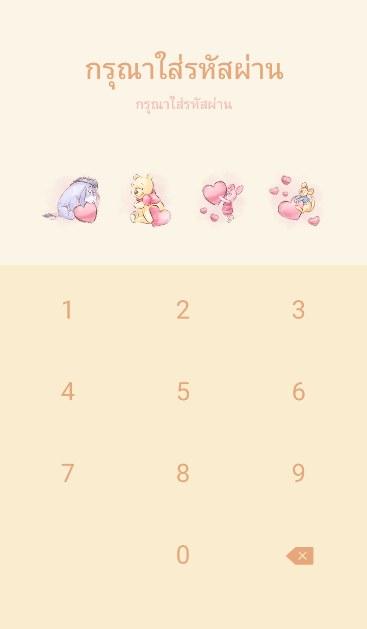 ธีมลายเส้นอ่อนโยนสีสันนุ่มตาจากหมีพูห์ ภาพหมีพูห์กอดกับเพื่อนรักน่าประทับใจที่สุดเลย♪ * จะมีการอัพเดตธีมเป็นระยะจนถึง 180 วันหลังสิ้นสุดการจำหน่าย