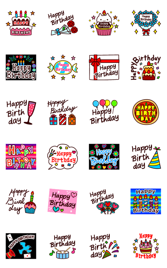 Happy Birthday, Celebration, greeting, message cards. Animation, move, motion. Congratulations, party, cake, candle, bouquet, present, champagne, bird, balloon.
