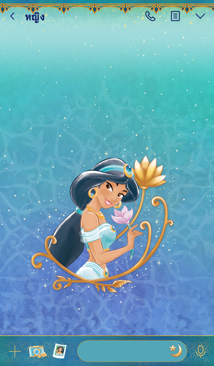 Comment: Jasmine (Turquoise). Princess Jasmine from the timeless classic Aladdin stars in this beautiful turquoise theme! The gorgeous color gradations and gold accents give all of your screens a stylish touch. Updates supported for 180 days after sales end.