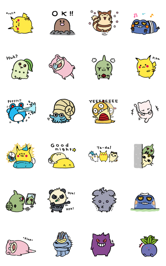 Comment: 24/7 Pokémon. You can bring your Pokémon into your chats with these cute stickers by nagano, the creator of the Joke Bear series. These adorable Pokémon are ready to do battle in your chats anytime, anywhere!