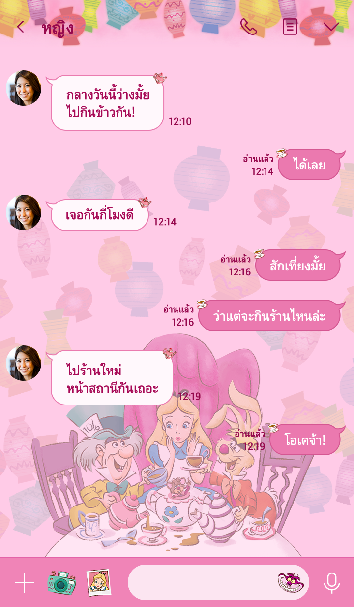 ธีมสวยสีสันสดใสสะใจจาก "อลิซท่องแดนมหัศจรรย์" เพื่อนๆ อยากไปร่วมในปาร์ตี้น้ำชากับอลิซไหมจ๊ะ ♪ * จะมีการอัพเดตธีมเป็นระยะจนถึง 180 วันหลังสิ้นสุดการจำหน่าย