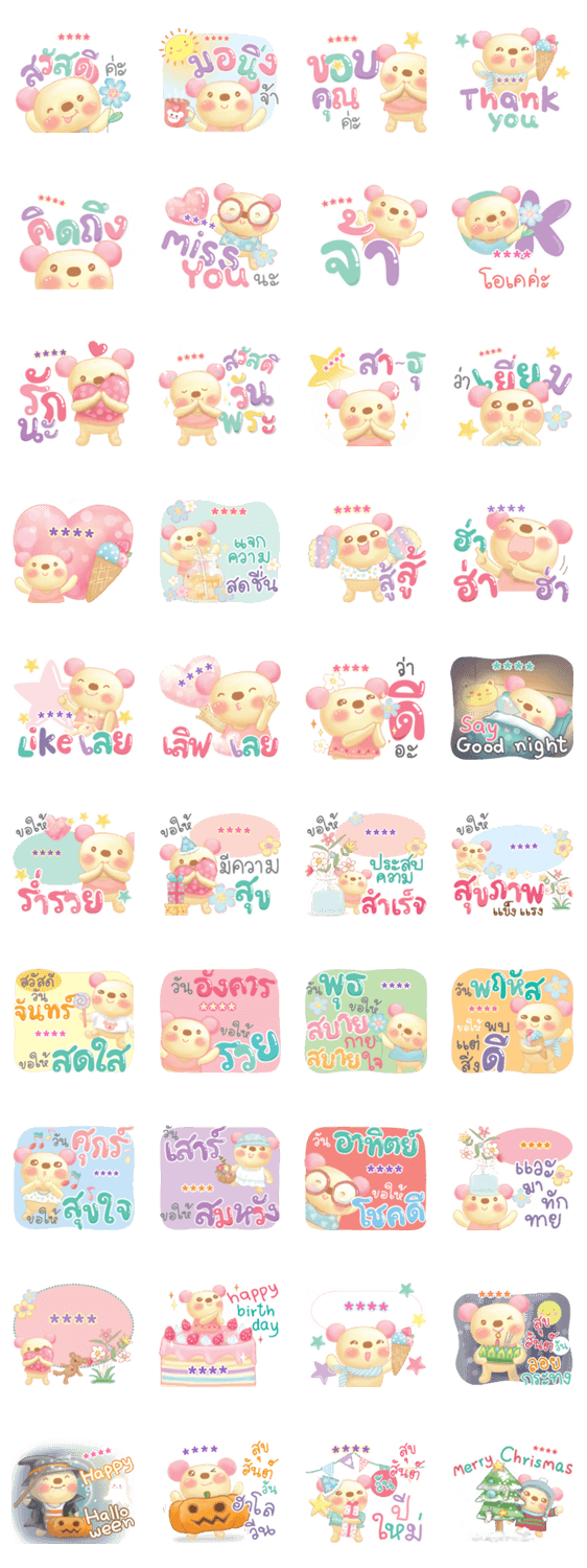 เท็ดดี้ หมีสีชมพู เติมคำ+เปลี่ยนคำได้สนุกๆกันทุกวัน ใช้ทักทาย,อวยพร,ส่งความสุขหากันได้ทุกๆวันเลยจ้า *ลองเติมคำ แล้วดูตัวอย่างการแสดงคำบนสติกเกอร์ก่อนซื้อนะคะ