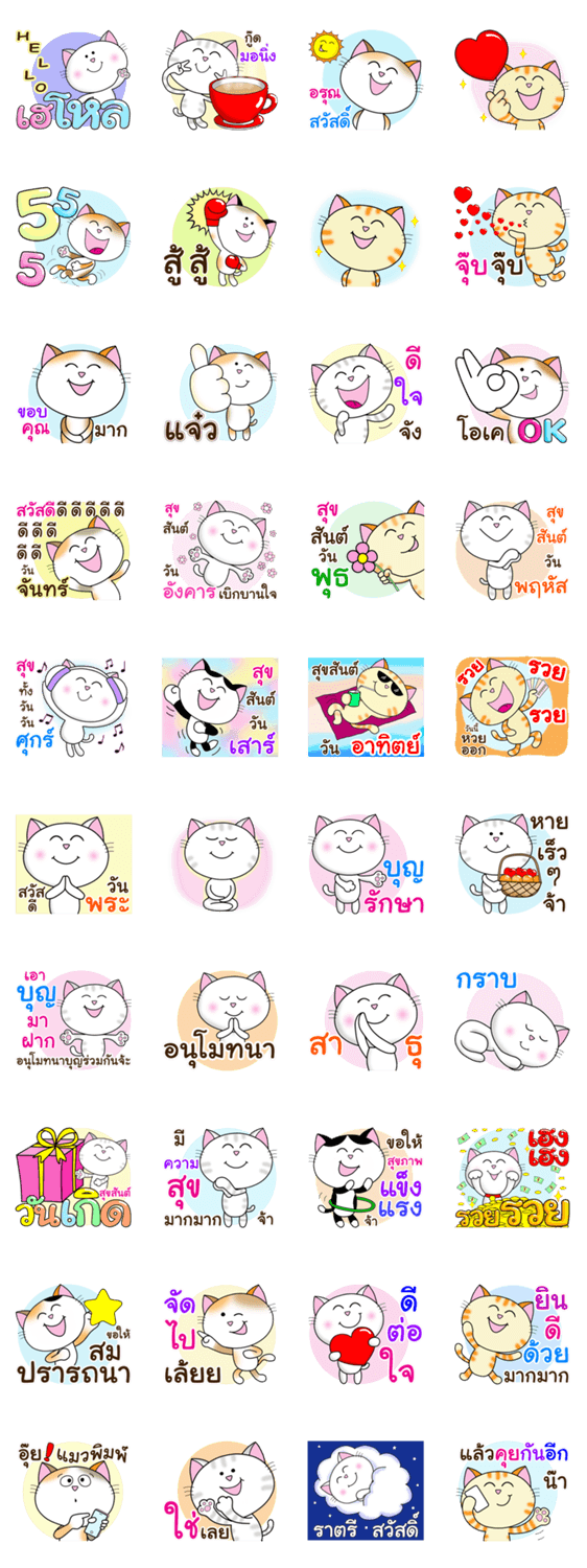 น้องแมว น่ารัก สดใส ทักทาย ทุกวัน อักษรใหญ่ คำโต อ่านง่าย สุภาพ ส่ง ความรัก ความห่วงใย กำลังใจ เชียร์ ยินดี อวยพร วันเกิด ส่ง ความสุข ให้แชทสนุก ใช้ได้ทุกเทศกาล