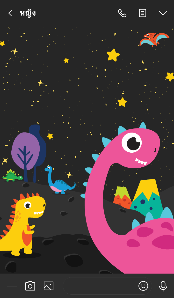 Colorful Cute Dino ParkTheme. Pink, blue, yellow, oranges, purple, and green simple doodle cute dinosaur from another animals galaxy for your lovely LINE Theme.