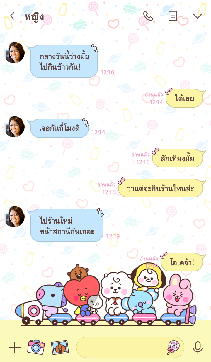 หัวใจของคุณจะเต้นแรงเมื่อได้พบกับชาว UNIVERSTAR BT21 เวอร์ชันเบบี๋ตัวเล็กจิ๋ว รีบเป็นเจ้าของเลยนะ จะได้แชทกับเพื่อนๆ กันให้สนุกท่ามกลางเบบี๋ผู้น่ารักในทุกหน้าจอ♪ * จะมีการอัพเดตธีมเป็นระยะจนถึง 180 วันหลังสิ้นสุดการจำหน่าย