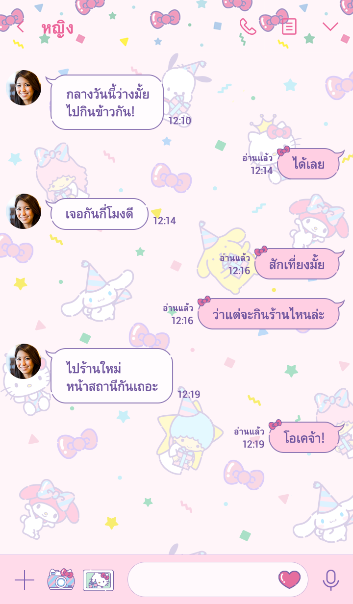 ธีมชุดสุดพิเศษจริงๆๆๆ เพื่อฉลองเฮลโลคิตตีครบรอบ 45 ปี ตัวละครซานริโอยกขบวนมาร่วมแสดงความยินดีด้วยมากมาย คราวนี้คุณจะได้แชทแบบน่ารักล้นจอ! โหลดได้ถึงวันที่ 30 มิถุนายน 2563 เวลา 9.00 น. (เวลาในประเทศไทย) * จะมีการอัพเดตธีมเป็นระยะจนถึง 180 วันหลังสิ้นสุดการจำหน่าย