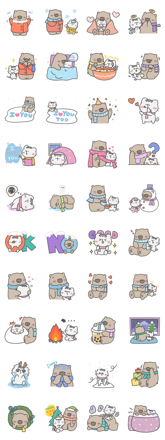 Comment: Mr. Bear & His Cutie Cat : LCM x SABINA. This sticker set is created for exclusive collaboration between LINE Creators Market and Sabina under LINE Creators Market x SABINA