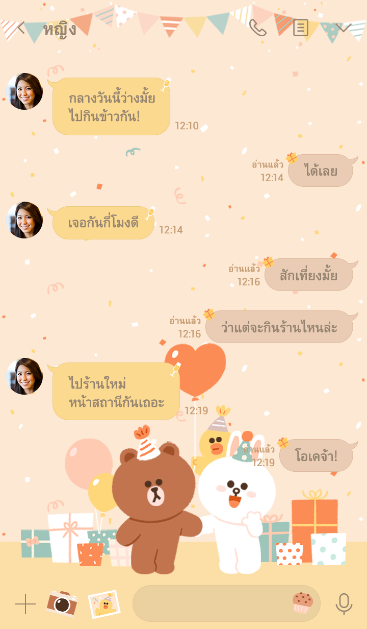 ธีมชุดสนุกที่เต็มไปด้วยความสุขจาก BROWN & FRIENDS มาแล้วจ้า! ลุกขึ้นมาแต่งตัวไปร่วมงานปาร์ตี้ที่บ้านบราวน์กับชาว LINE กันเถอะ♪ * จะมีการอัพเดตธีมเป็นระยะจนถึง 180 วันหลังสิ้นสุดการจำหน่าย