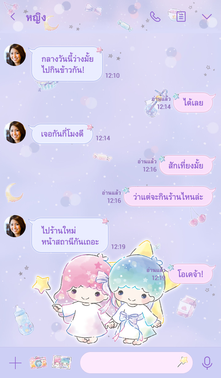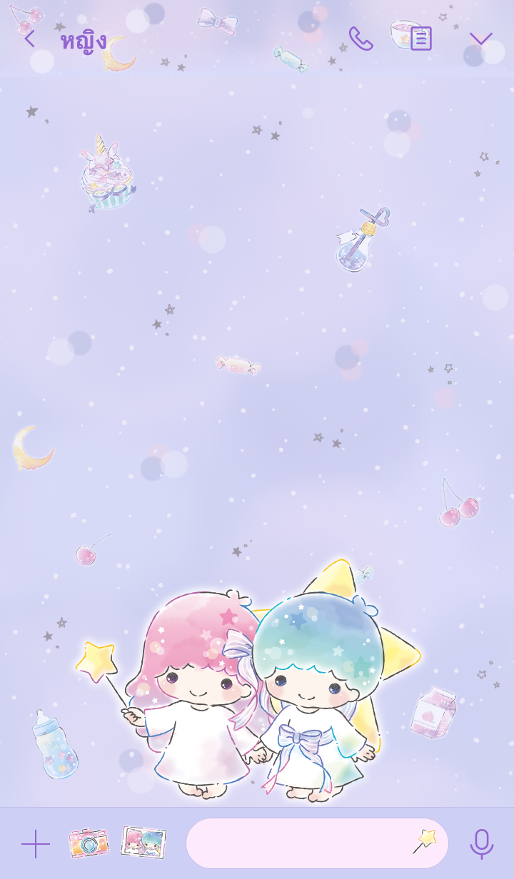 Comment: Little Twin Stars: Dreamy. Kiki and Lala take over your screens with this dreamy theme. The cute design and gentle color gradations add a soothing touch to all of your LINE screens. Updates supported for 180 days after sales end.