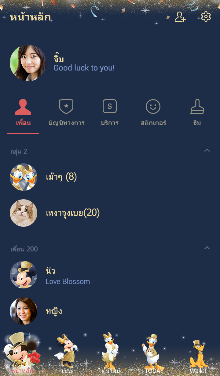 มาแล้วจ้า มิกกี้เมาส์และเพื่อนๆ ผู้ร่าเริงจะมาชวนคุณไปสนุกกับพวกเขาในปาร์ตี้สุดหรู ลุกขึ้นมาแต่งชุดสีทองวิบวับสุดหรูแล้วไปกันเลย♪ * จะมีการอัพเดตธีมเป็นระยะจนถึง 180 วันหลังสิ้นสุดการจำหน่าย